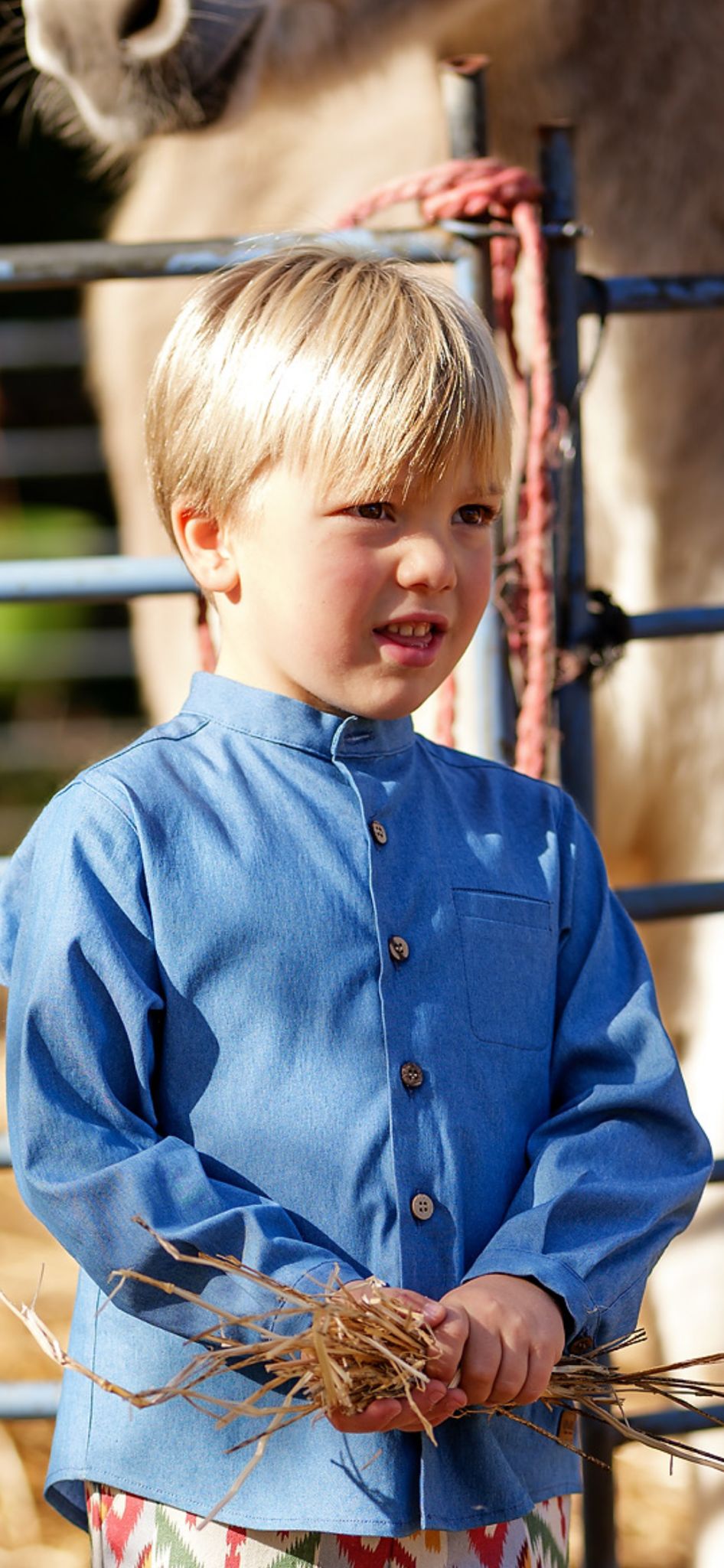 Camisa para bebe niño y niño en tejido denim de la nueva colección otoño / invierno 2025/2026 de la marca española José Varón.