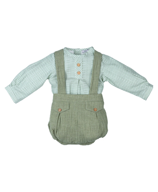 Camisa Infantil para niño en cuadros blanco y verde. Colección otoño – invierno 2025/2026 de la marca española Popys.