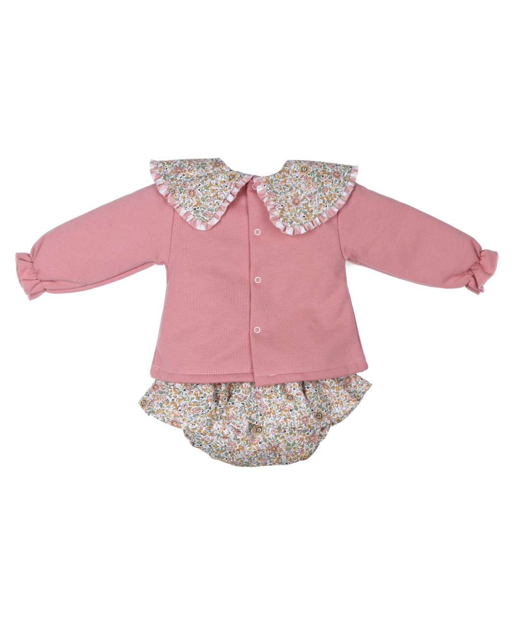 Conjunto para bebe niña 2 piezas. Sudadera con maxi cuello en estampado liberty y braguitas con volante a juego. Colección otoño – invierno 2025 / 2026 de la marca española Popys.