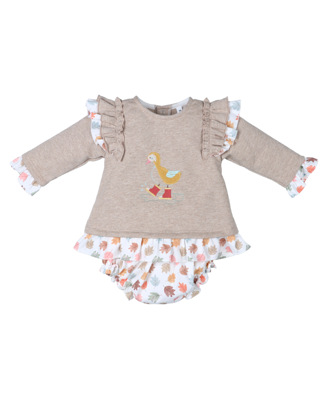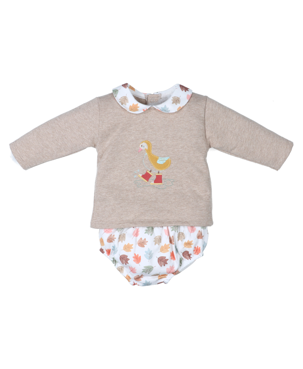 Conjunto 2 piezas para bebe niña. Sudadera con volante y cubrepañal a juego. Colección otoño – invierno 2025/2026 de la marca infantil española Popys.