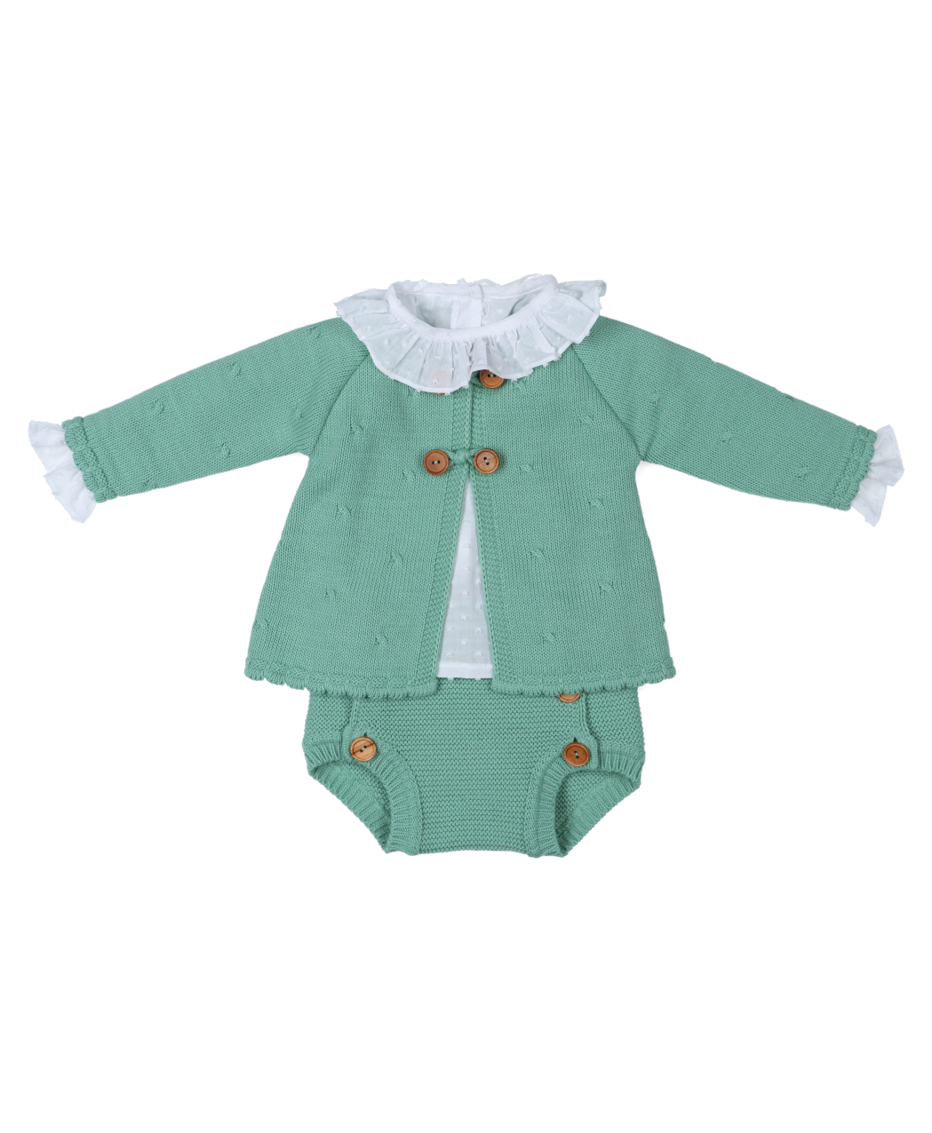 Conjunto de punto para bebe 3 piezas. Colección otoño – invierno 2025/2026 de la marca infantil española Popys.