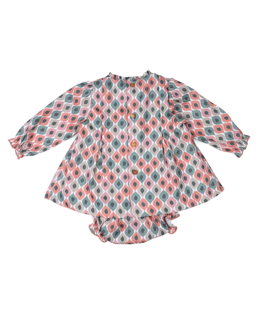 Jesusito 2 piezas para bebé niña en estampado étnico. Colección otoño – invierno 2025/2026 de la marca española Popys.