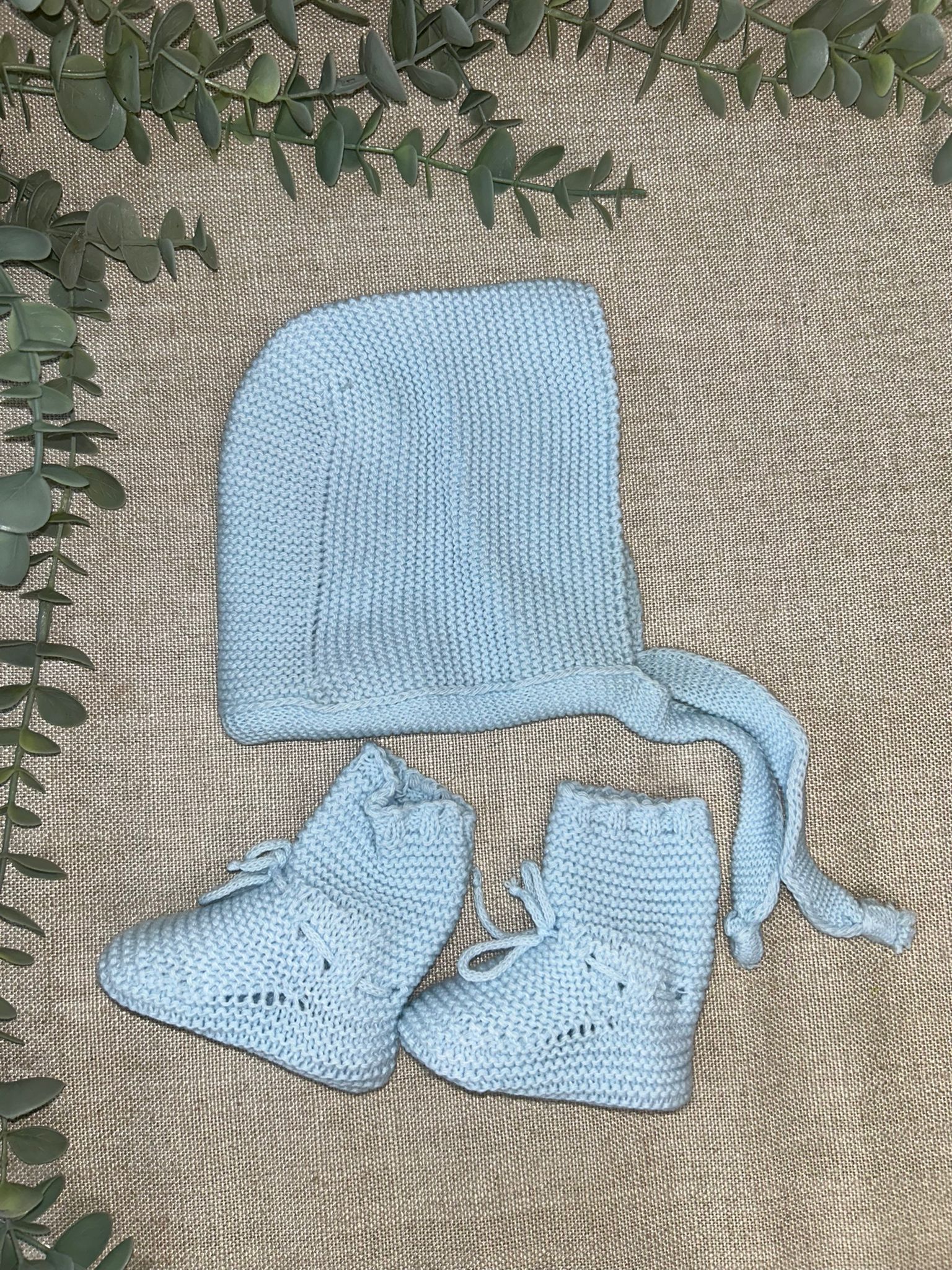 Conjunto de patucos y capota de punto para bebe en color vainilla. Colección otoño – invierno 2025/2026 de la marca infantil española Popys.