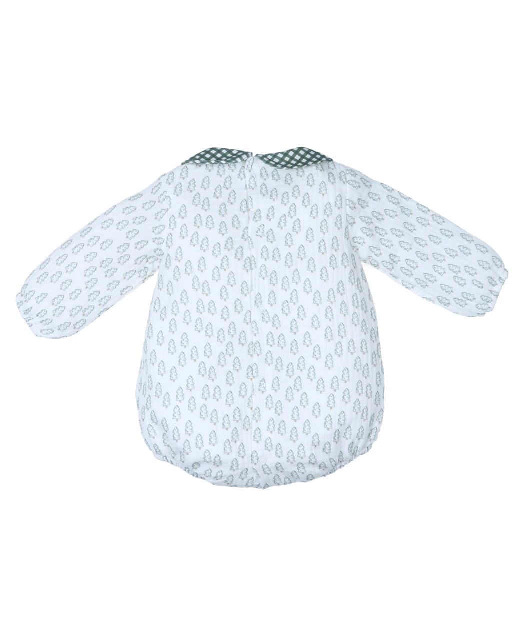 Pelele para bebe en tejido de bambula estampada. Colección otoño – invierno 2025 / 2026 de la marca infantil española Popys.