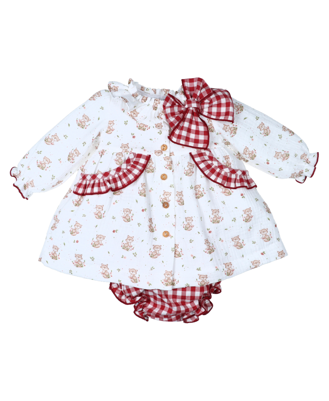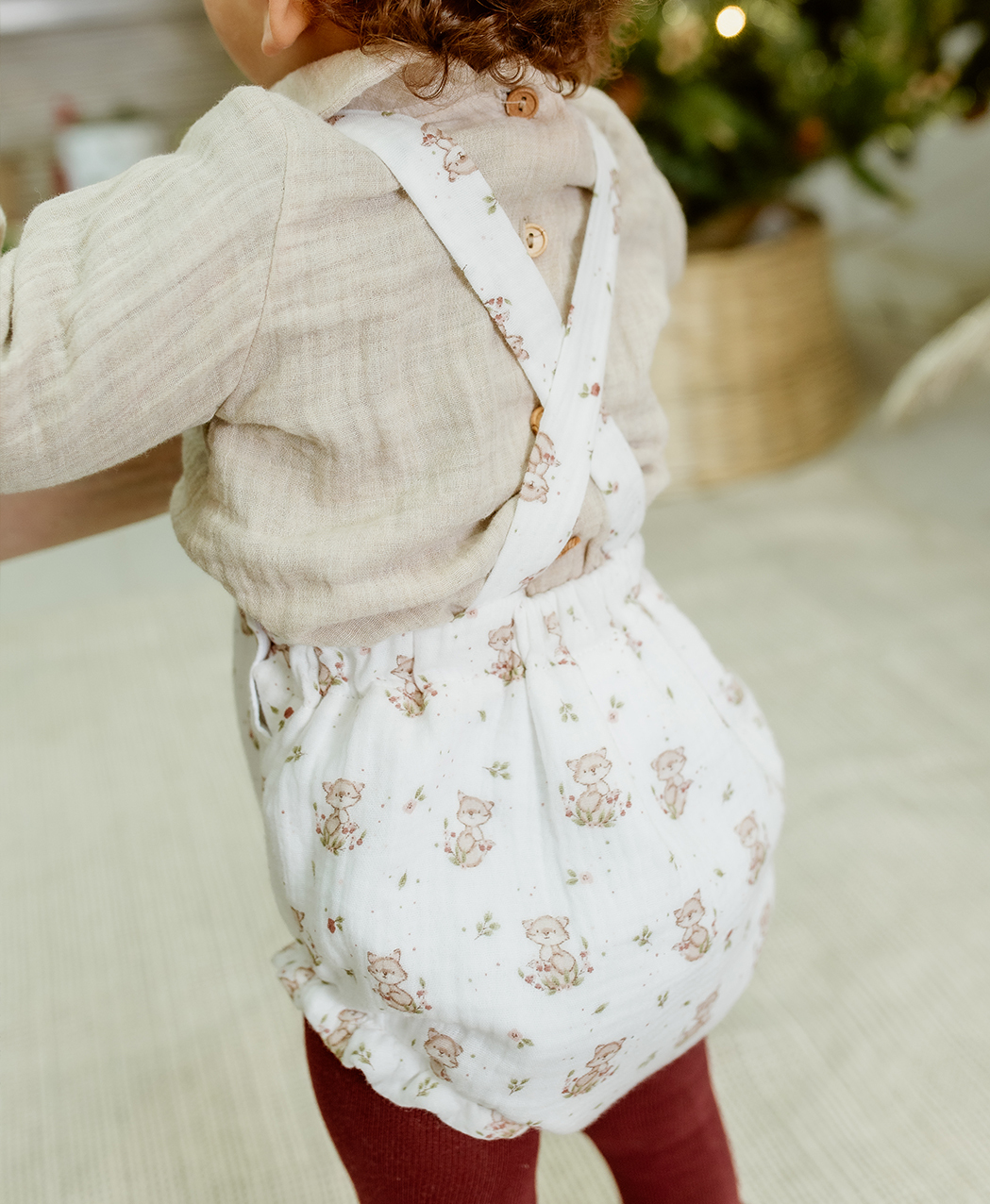 Ranita para bebe en bambula con estampado de zorritos. Familia Fox Checks de la colección otoño – invierno 2025/2026 de la marca española Popys.