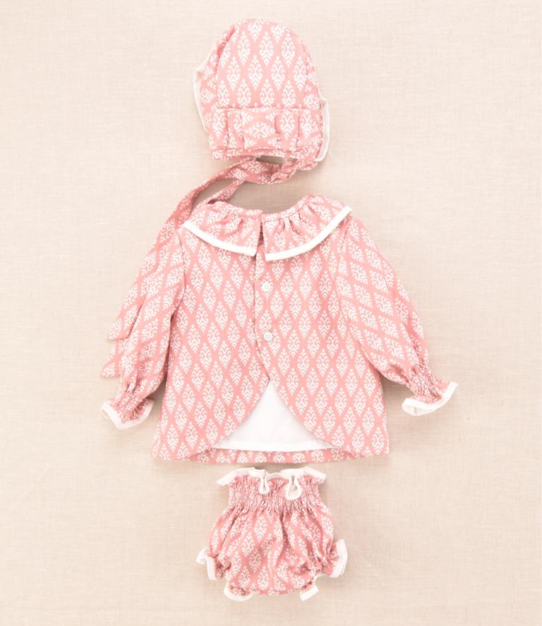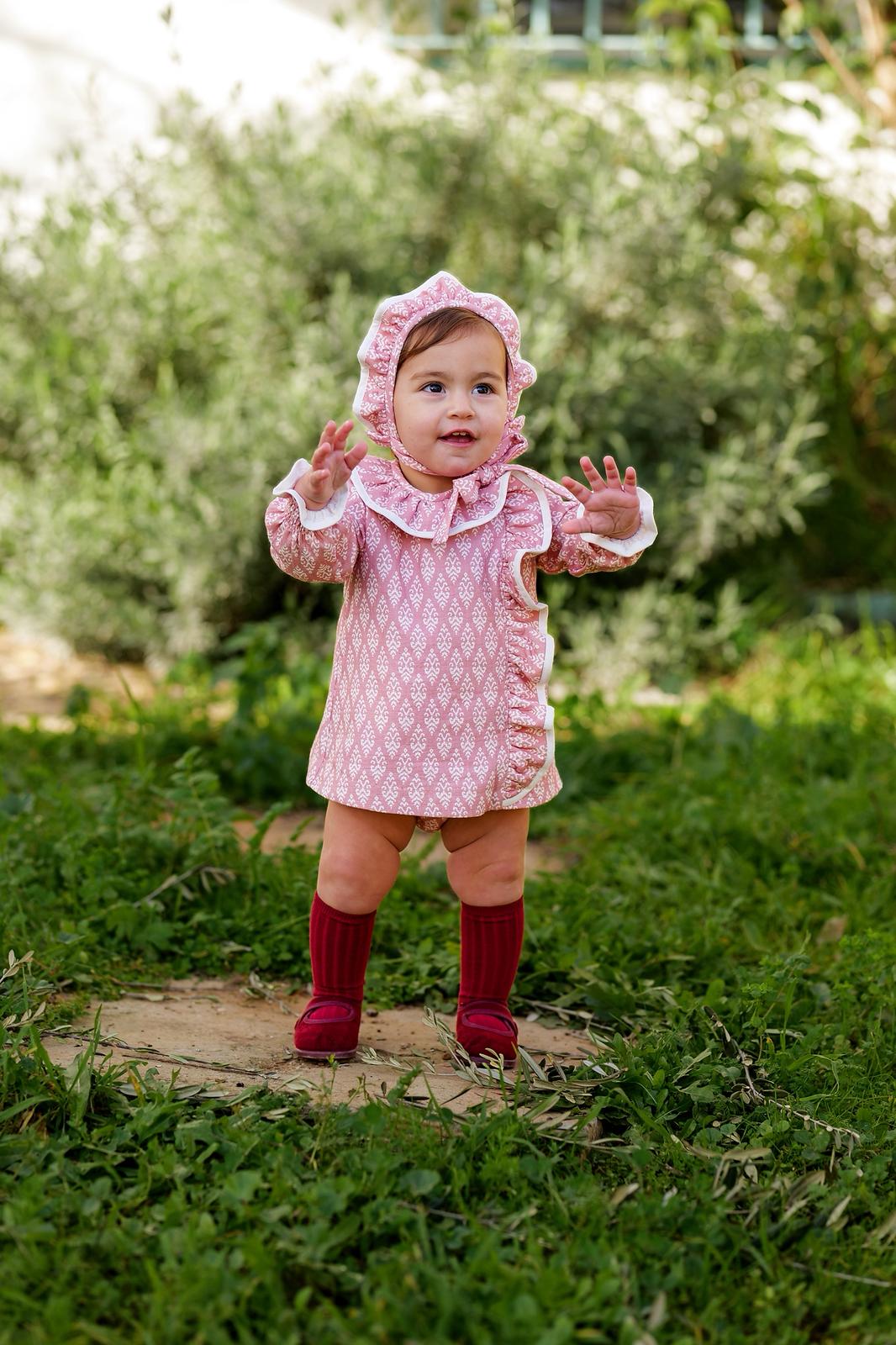 Vestido 3 piezas para bebe niña en tejido estampado. Nueva Colección otoño – invierno 2025/2026 de la marca española José Varón.