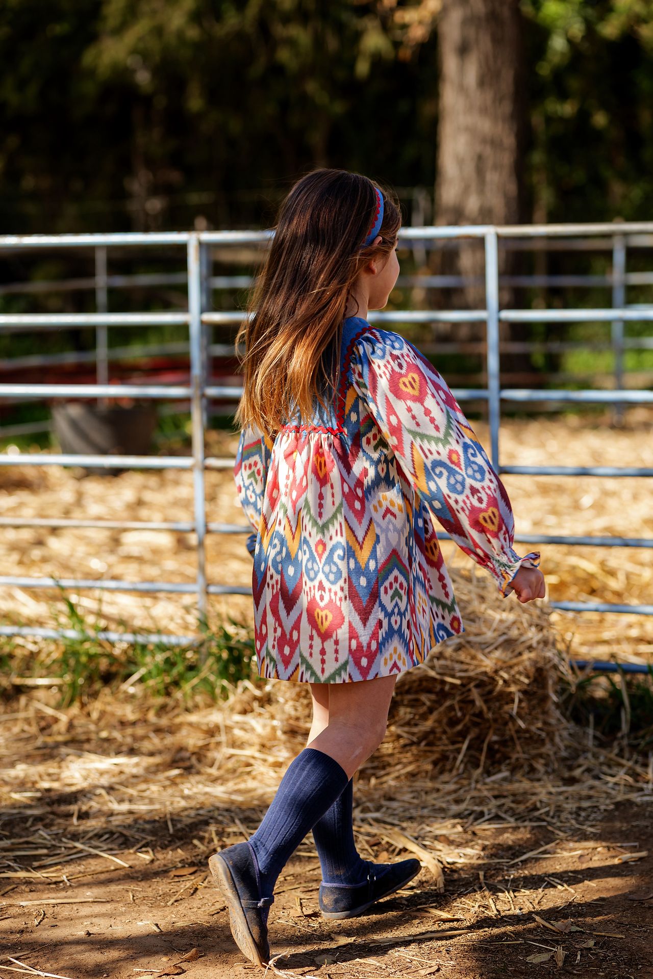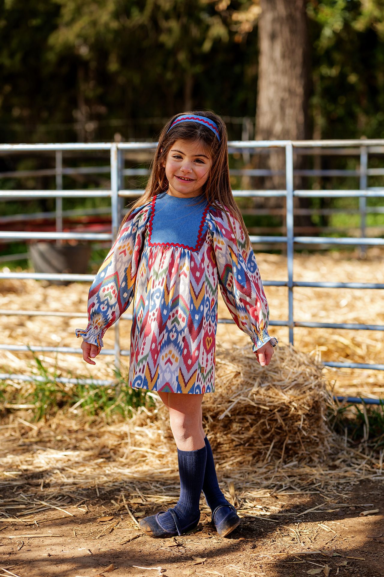 Vestido para niña en tejido étnico de la nueva colección otoño – invierno 2025 / 2026 de la marca española José Varón.